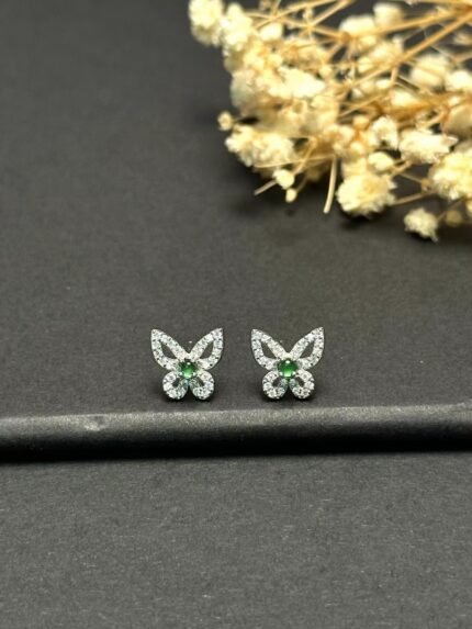 myglowjewels“Boho Chic Butterfly Studs with Mother – of – Pearl & Green Gem – Dainty Silver – Plated Earrings for Everyday Elegance | Perfect Gift for Her”