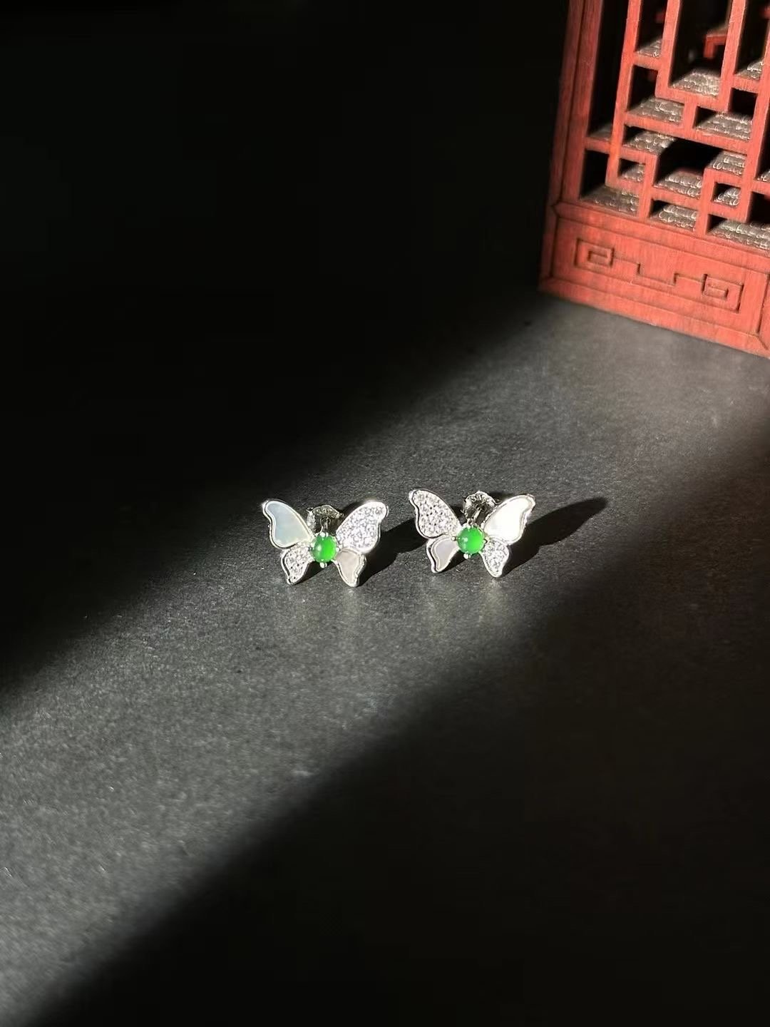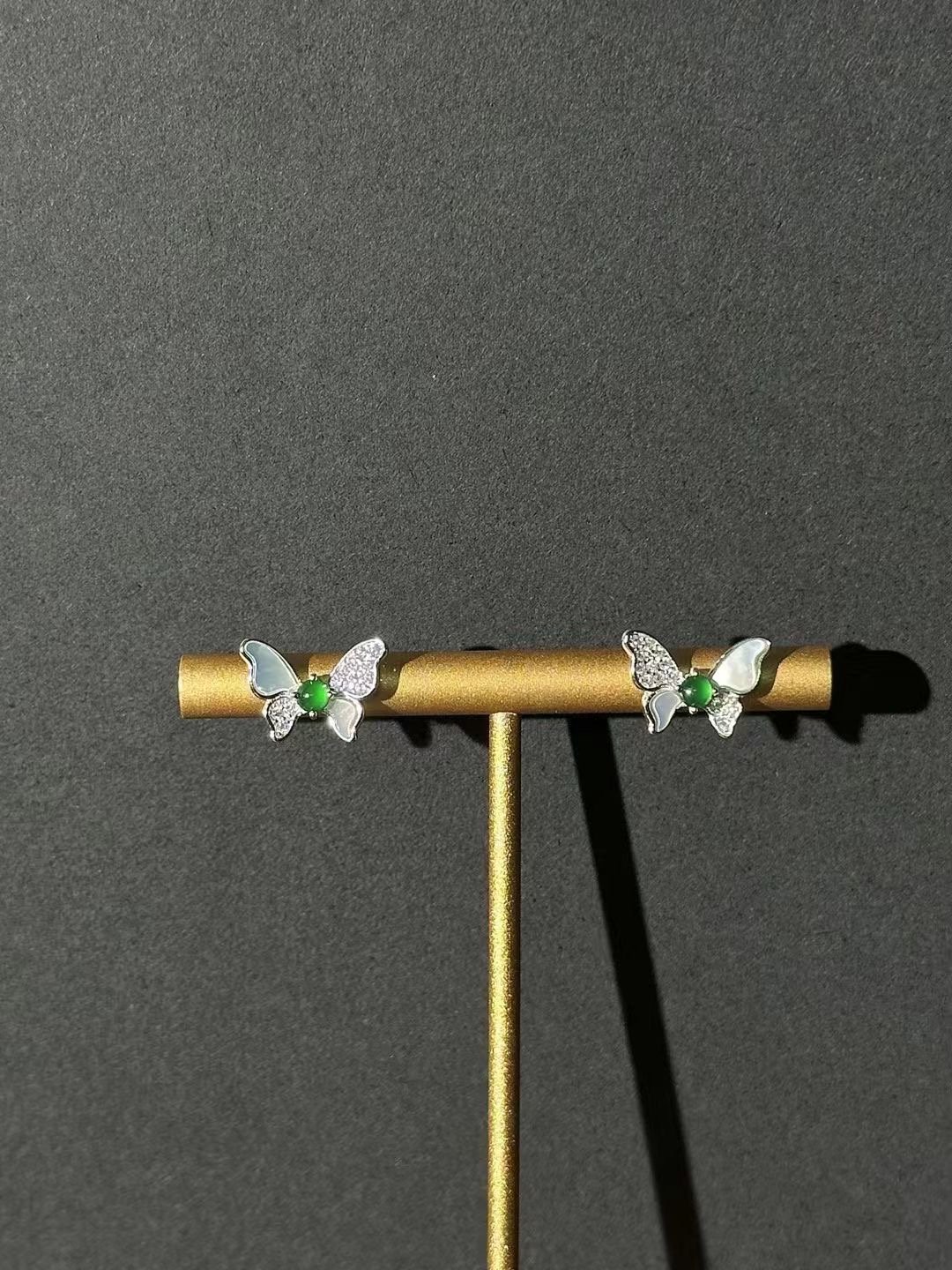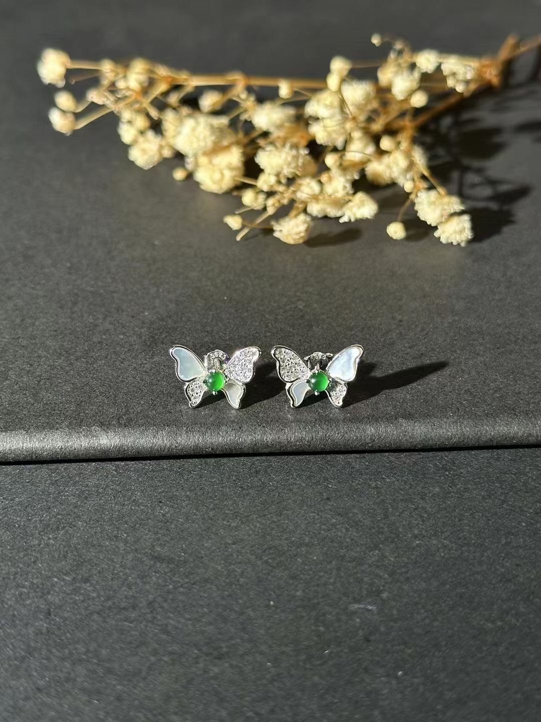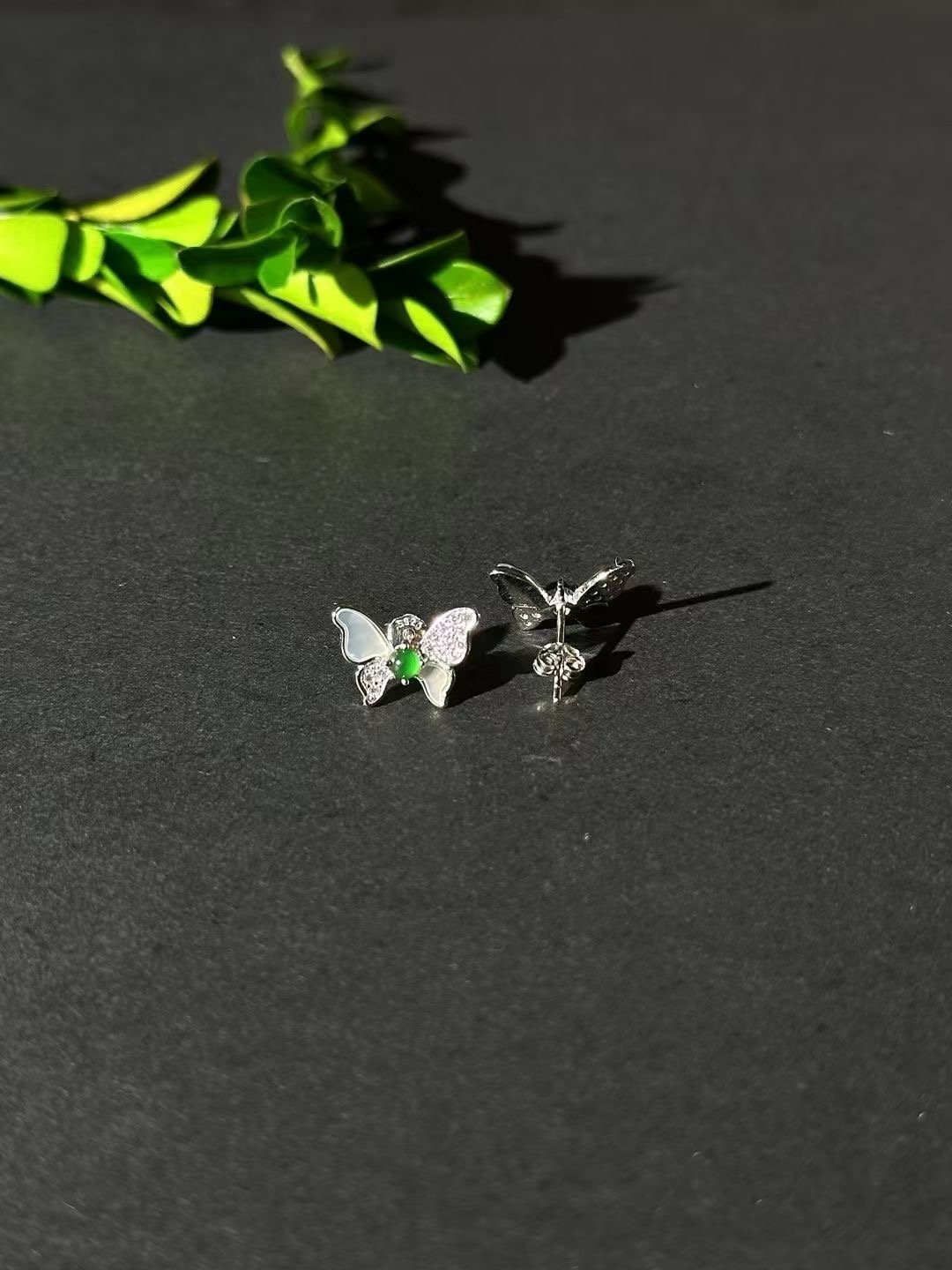 可爱的蝴蝶耳钉——珍珠母贝翅膀,绿宝石中心。日常佩戴方便,百搭百搭。也是完美的小礼物!