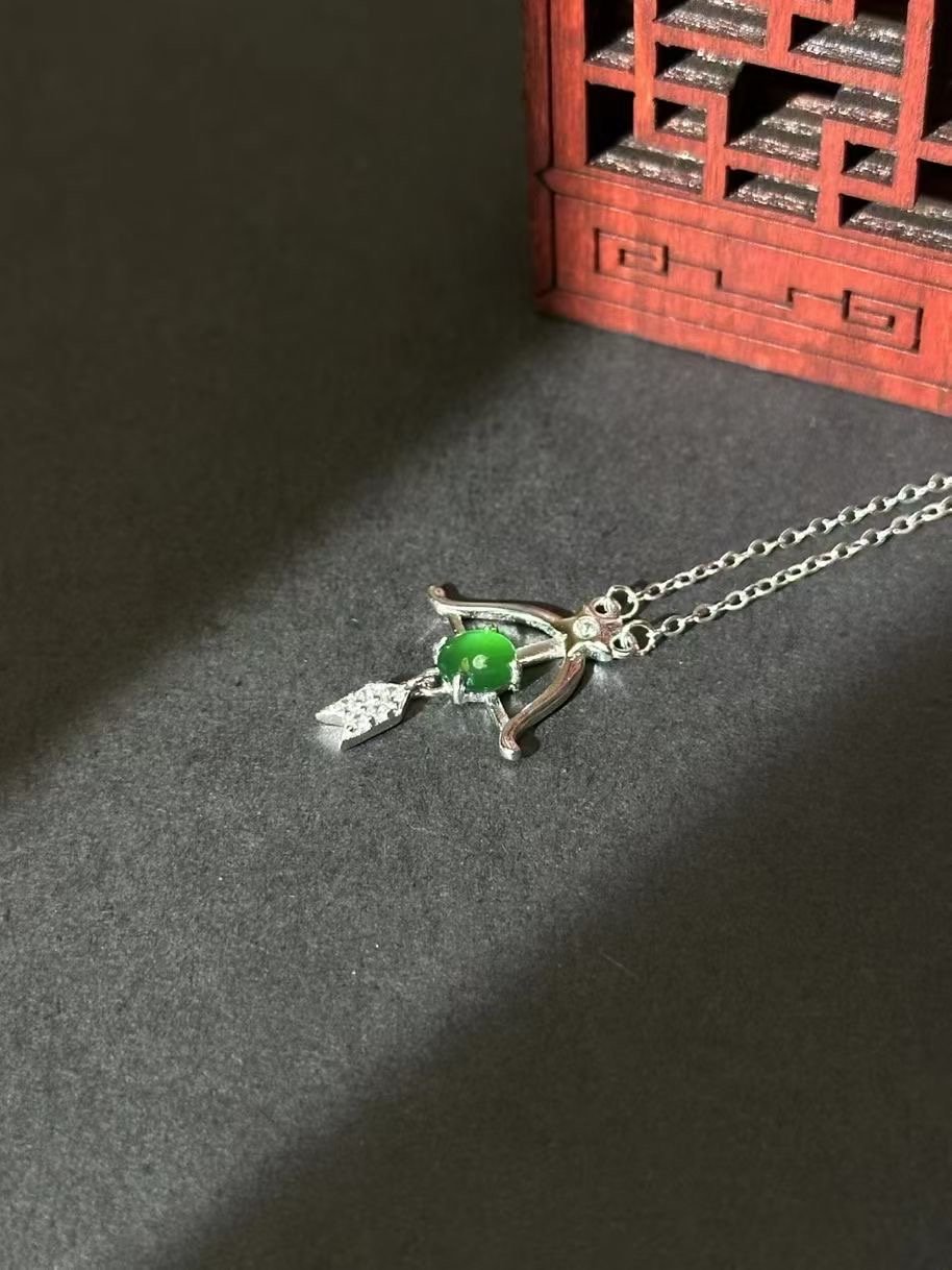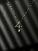 Elevate your jewelry collection with this unique arrow – motif necklace. Crafted in silver – toned metal, it features a luminous green gem at the center, held by an arrow design, and a dainty, crystal – encrusted charm dangling below. The delicate chain ensures it sits beautifully on your neckline, making it a versatile piece for everyday wear or special occasions.