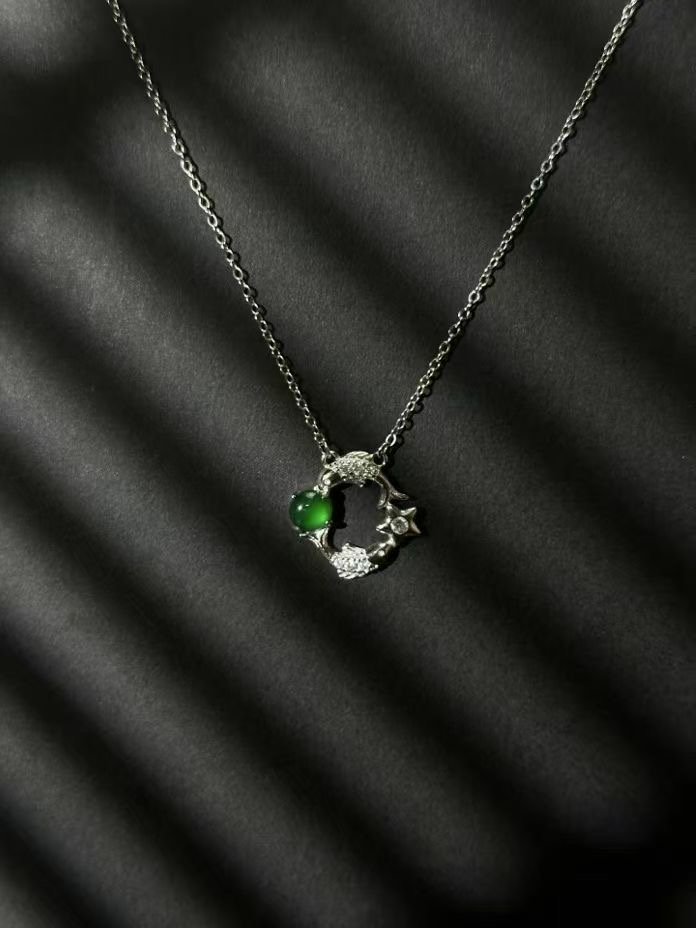This necklace is a dreamy find! A silver – toned, nature – inspired circle pendant with a glowing green gem and sparkly accents. Perfect for adding a delicate, whimsical touch to any outfit—effortlessly chic.