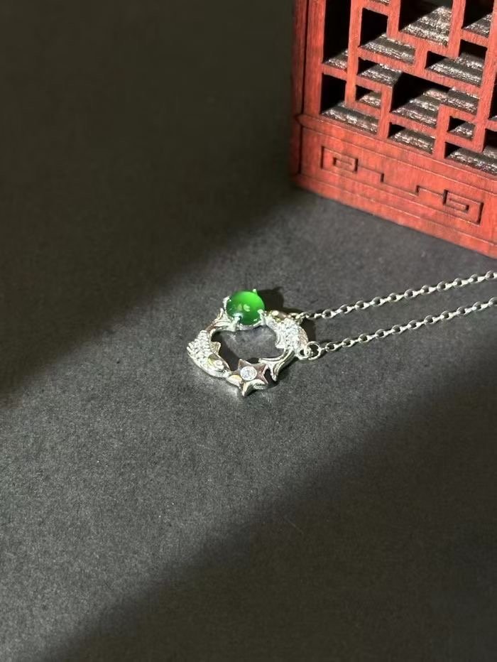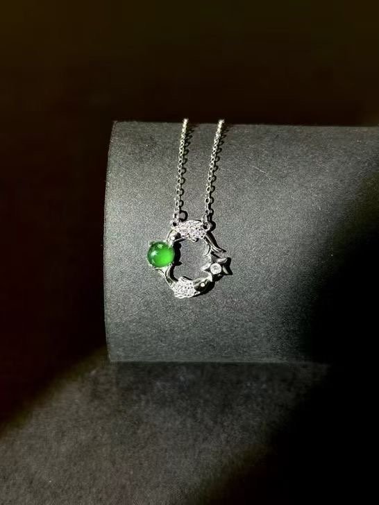 myglowjewels Natural Jadeite Pendant Necklace,S925 Silver Pendant,Healing Jewelry,Women’s Pendant Necklaces, Fashion Jewelry