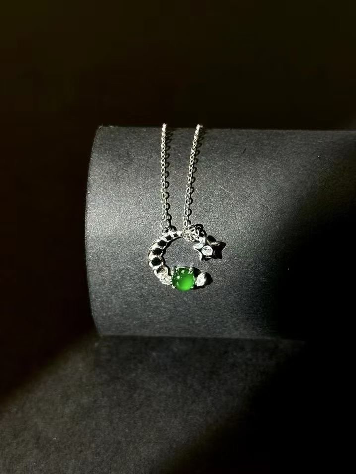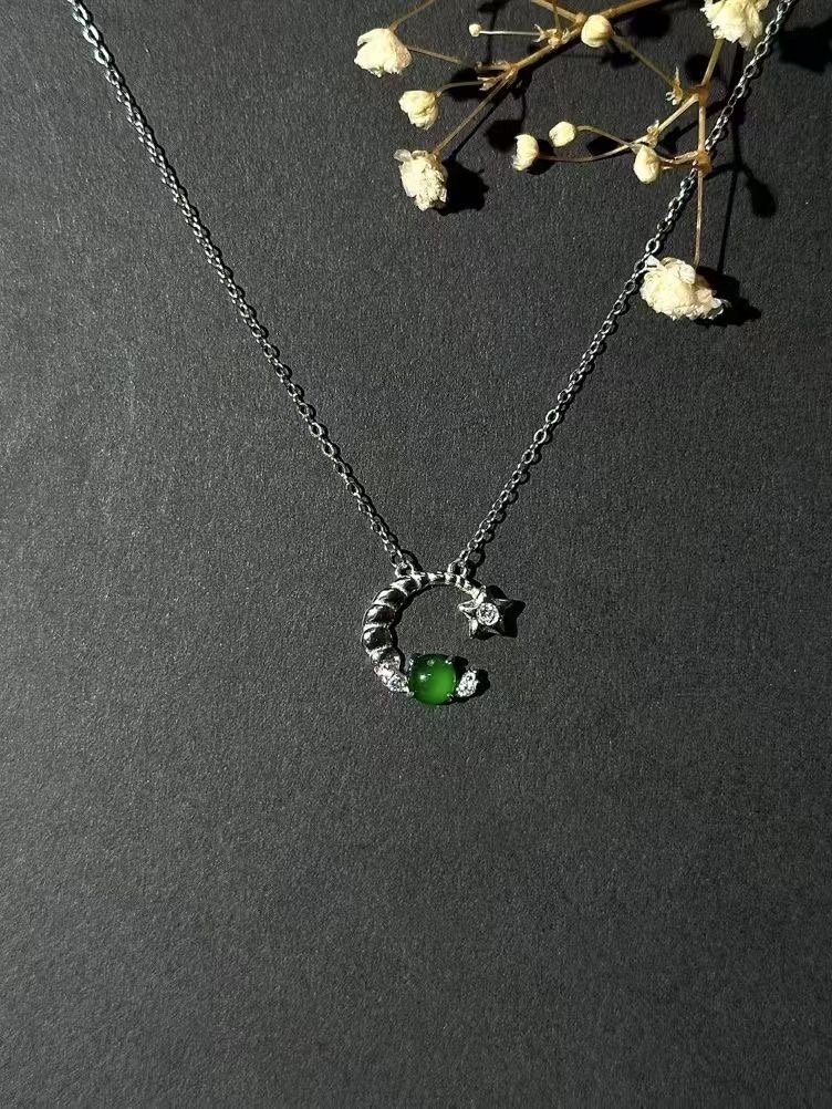 myglowjewels Natural Jadeite Pendant Necklace,S925 Silver Pendant,Healing Jewelry,Women’s Pendant Necklaces, Fashion Jewelry