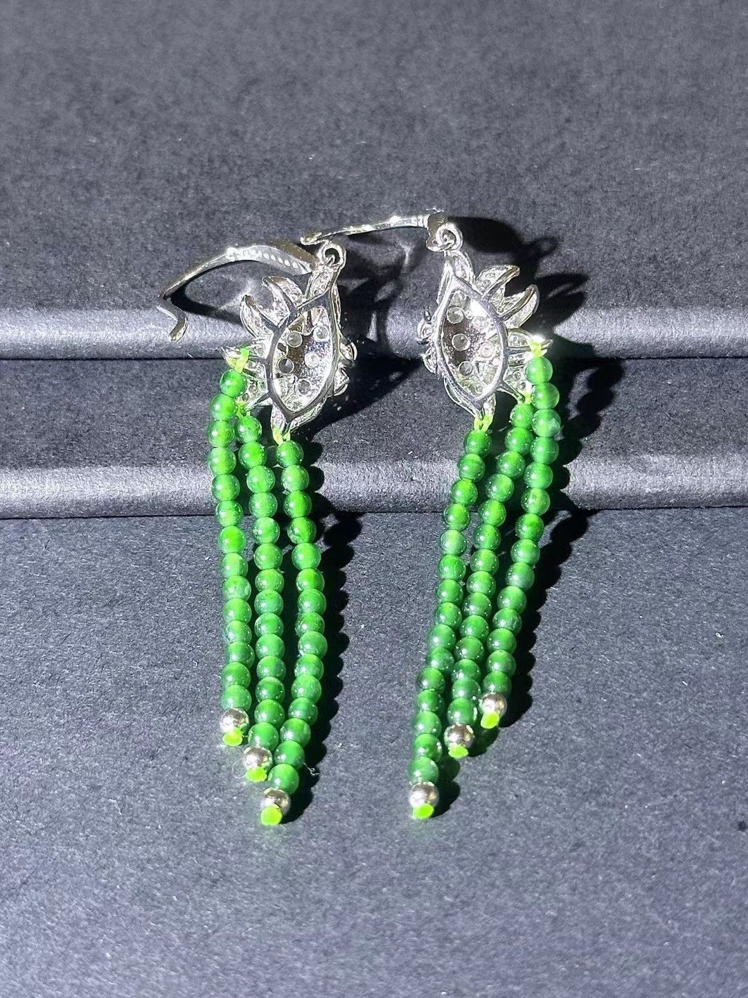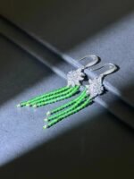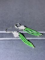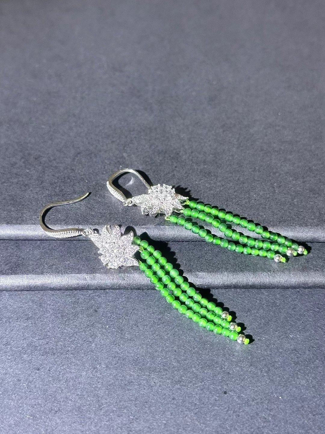 These earrings are gorgeous! A sparkling floral design with cascading green bead tassels adds instant elegance. Perfect for dressing up any look.