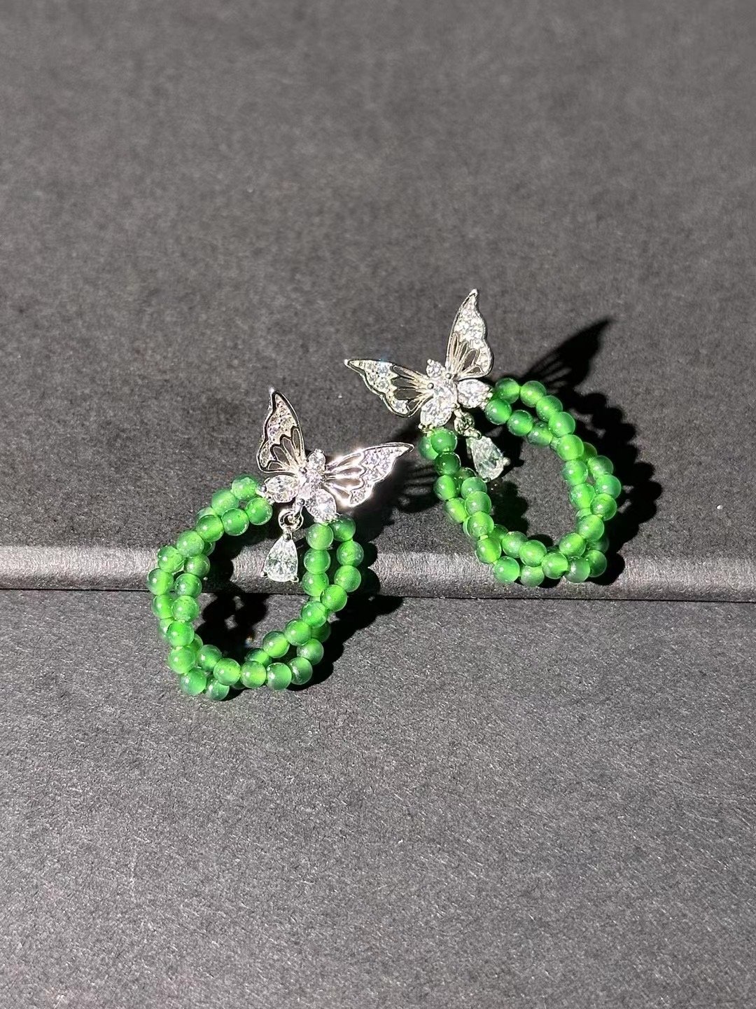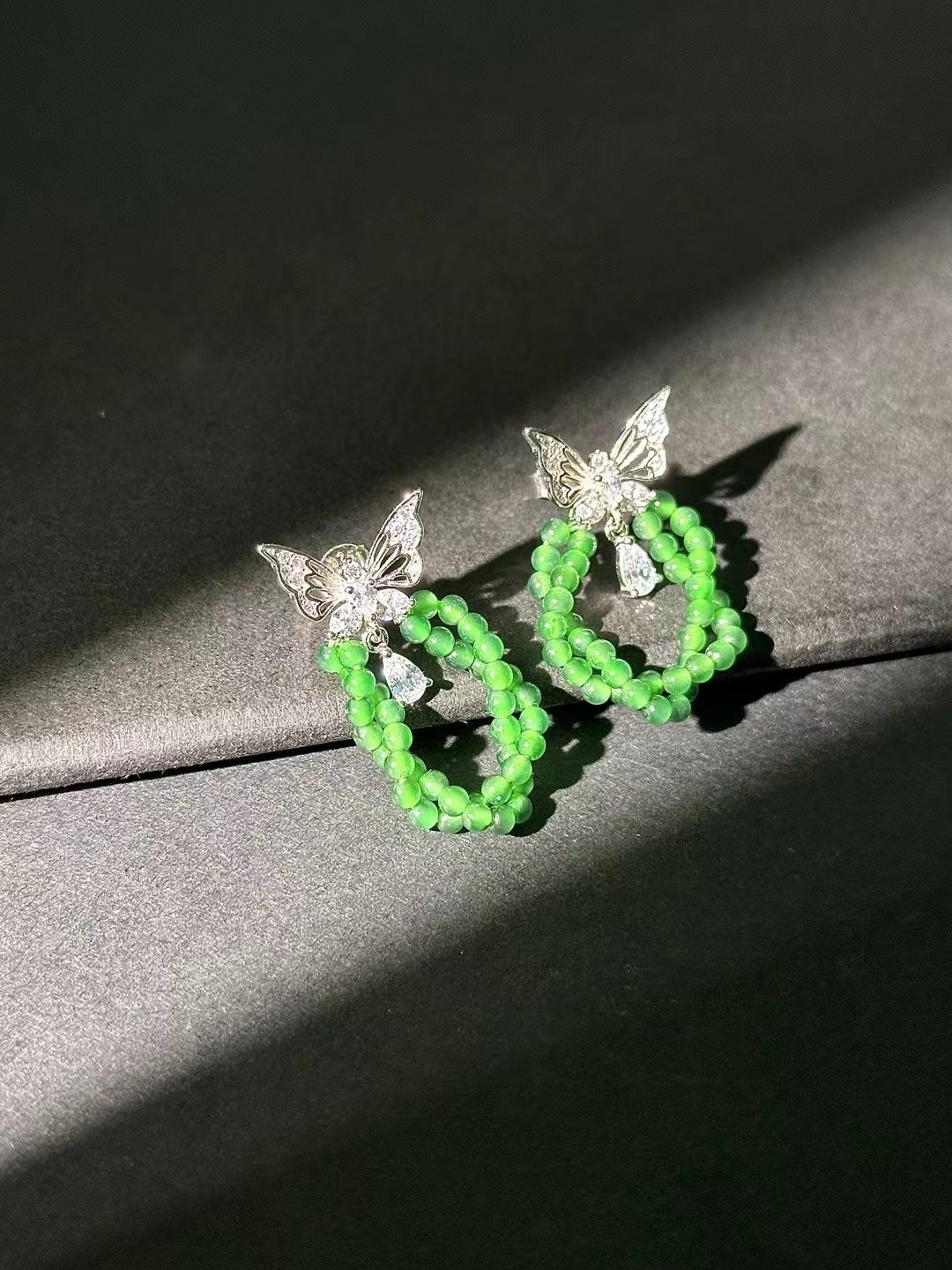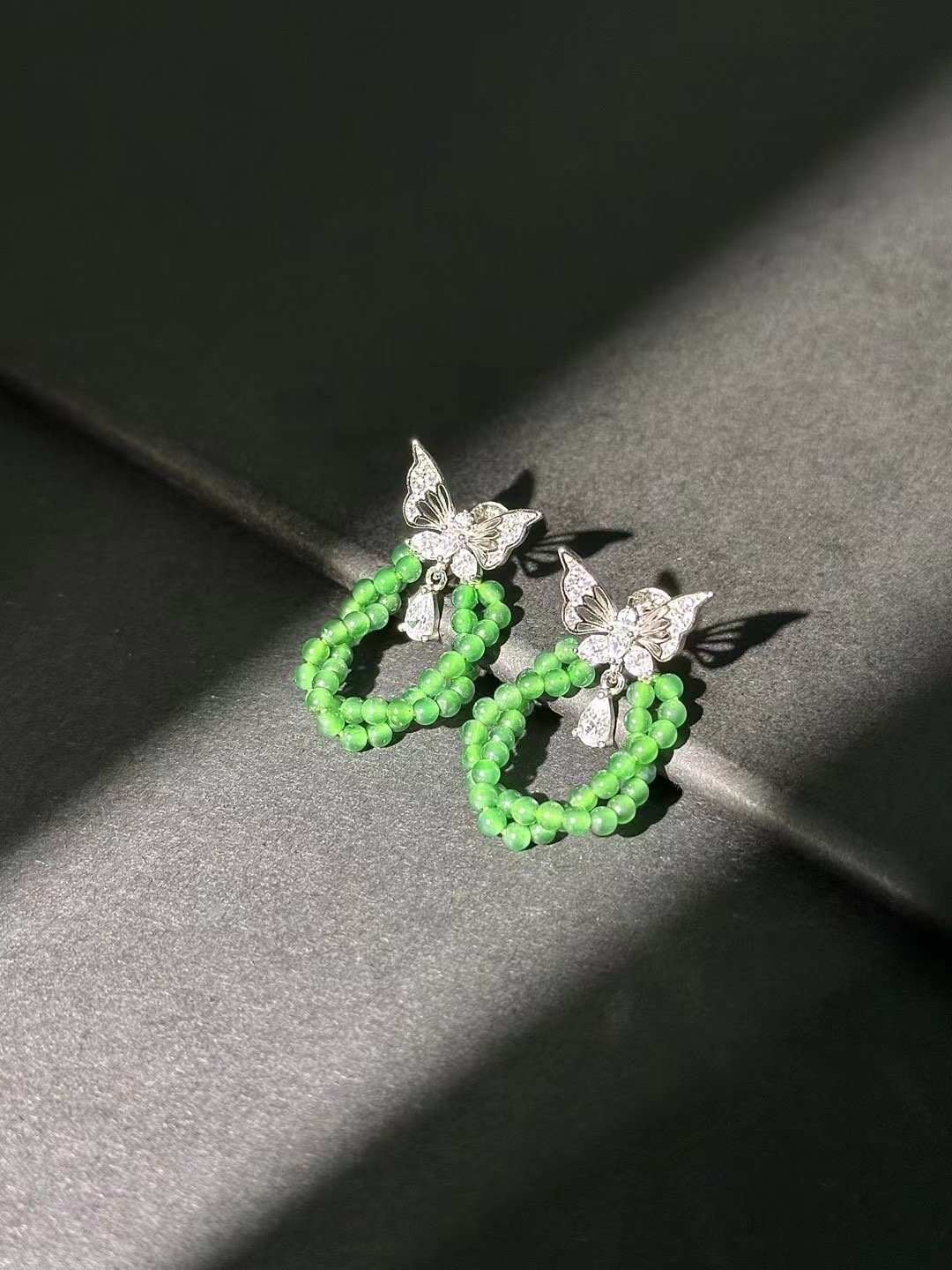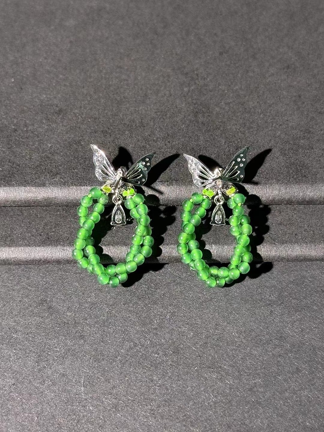 These earrings are super cute! With a butterfly accent and vibrant green bead hoops, they add a whimsical touch to any look. Perfect for everyday or dressing up.
