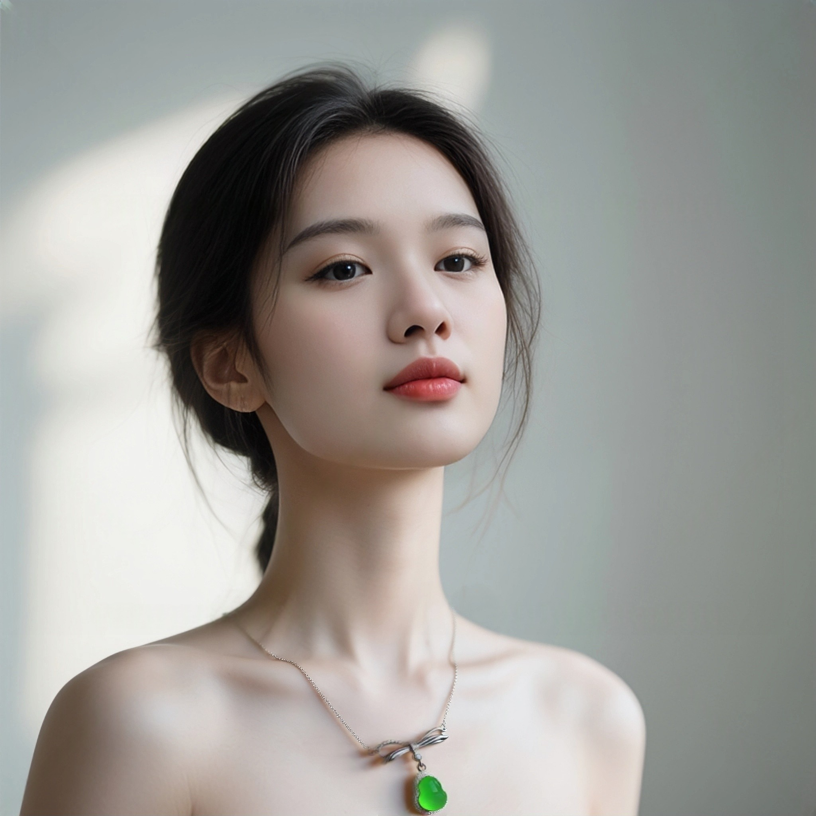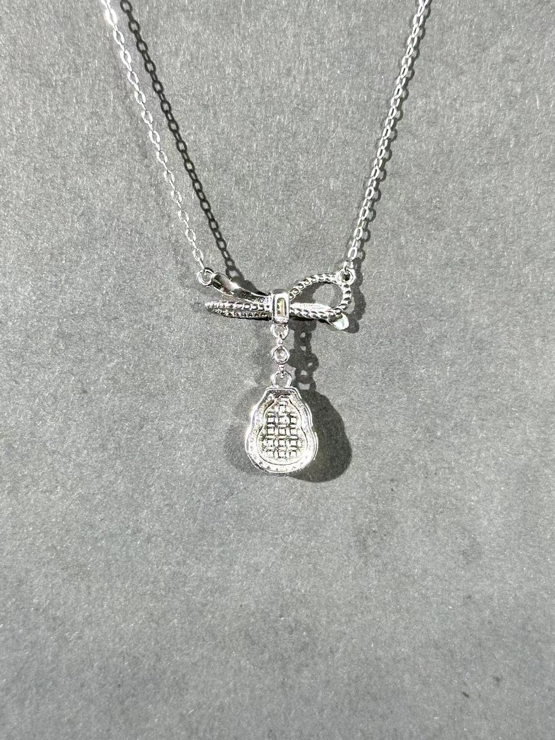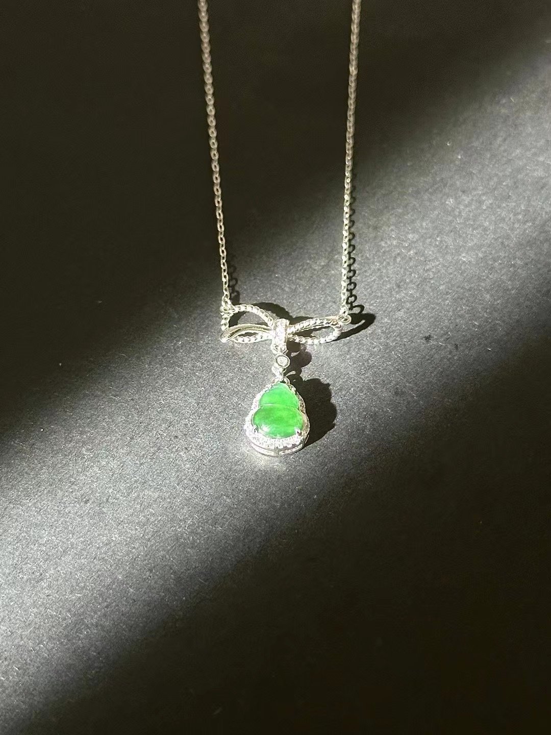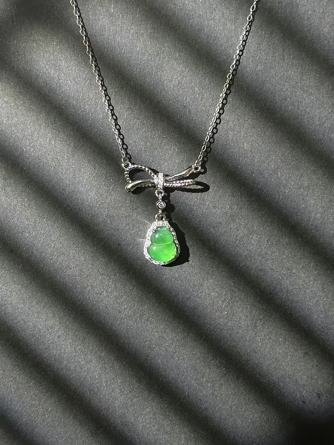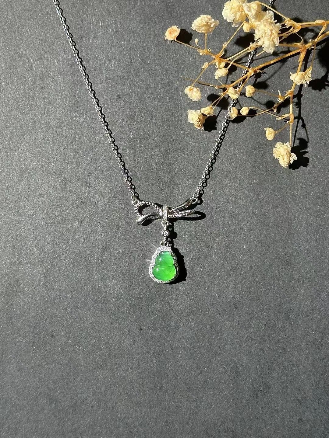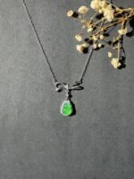 This necklace is stunning! Featuring a vibrant green gem, a sparkling bow – shaped detail, and a delicate silver chain, it adds instant elegance. Perfect for special occasions or gifting.