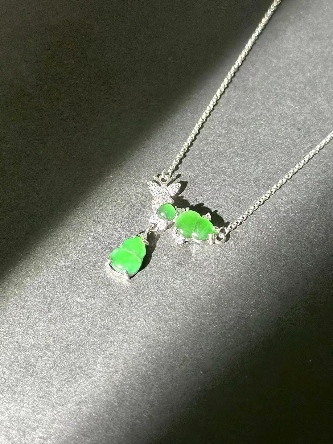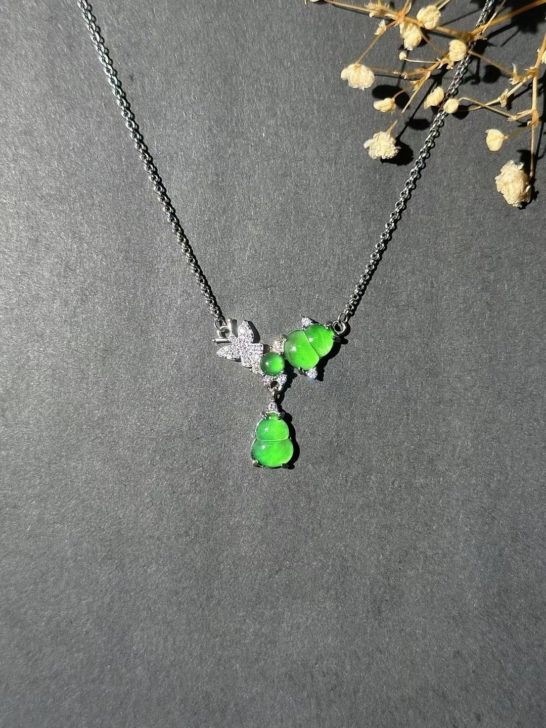 This necklace is stunning! Featuring vibrant green gourd – shaped gems and sparkling accents, it adds instant elegance. Perfect for special occasions or gifting.