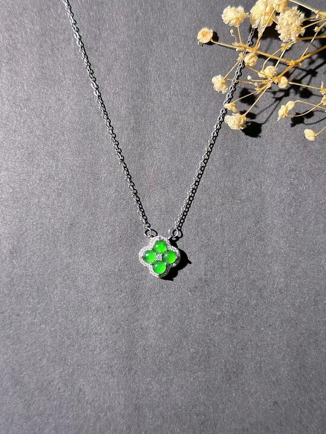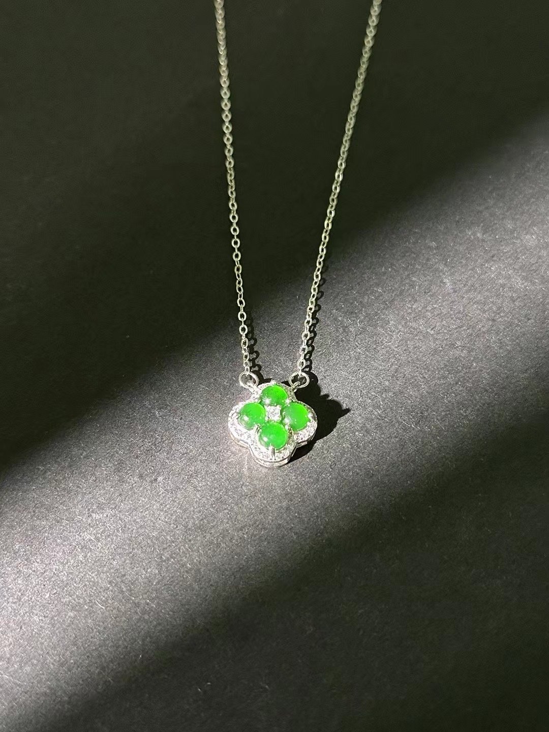 myglowjewels Natural Jadeite Pendant Necklace,S925 Silver Pendant,Healing Jewelry,Women’s Pendant Necklaces, Fashion Jewelry