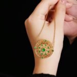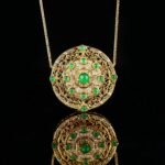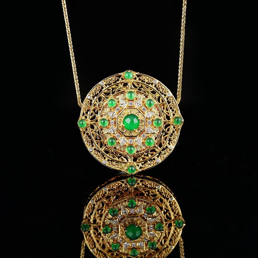 Elevate your jewelry collection with this showstopping gold – plated pendant necklace. The large, circular design features intricate filigree work that screams old – world elegance, adorned with vivid green gemstones and delicate, shimmering accents. Each detail—from the central emerald – like stone to the perfectly placed smaller gems—creates a hypnotic, eye – catching effect.