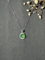 This pendant necklace is a showstopper! A vibrant green gem in a sleek silver setting adds instant elegance. Perfect for dressing up or gifting.