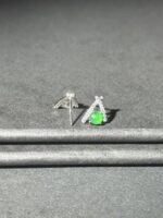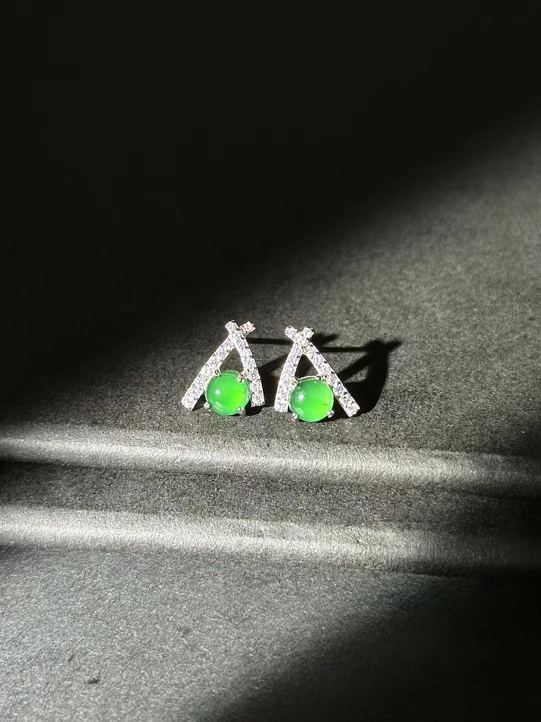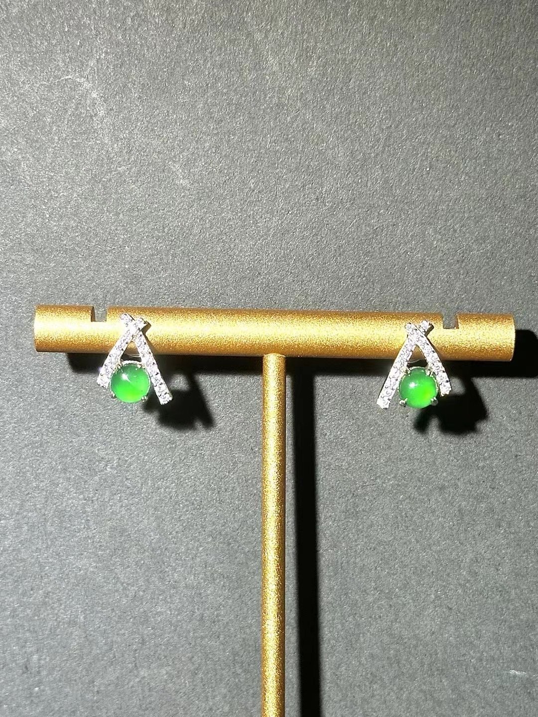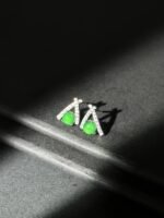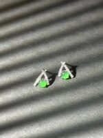 These earrings are chic! A vibrant green gem in a sleek, angular design with sparkling accents adds instant style. Perfect for elevating any outfit.