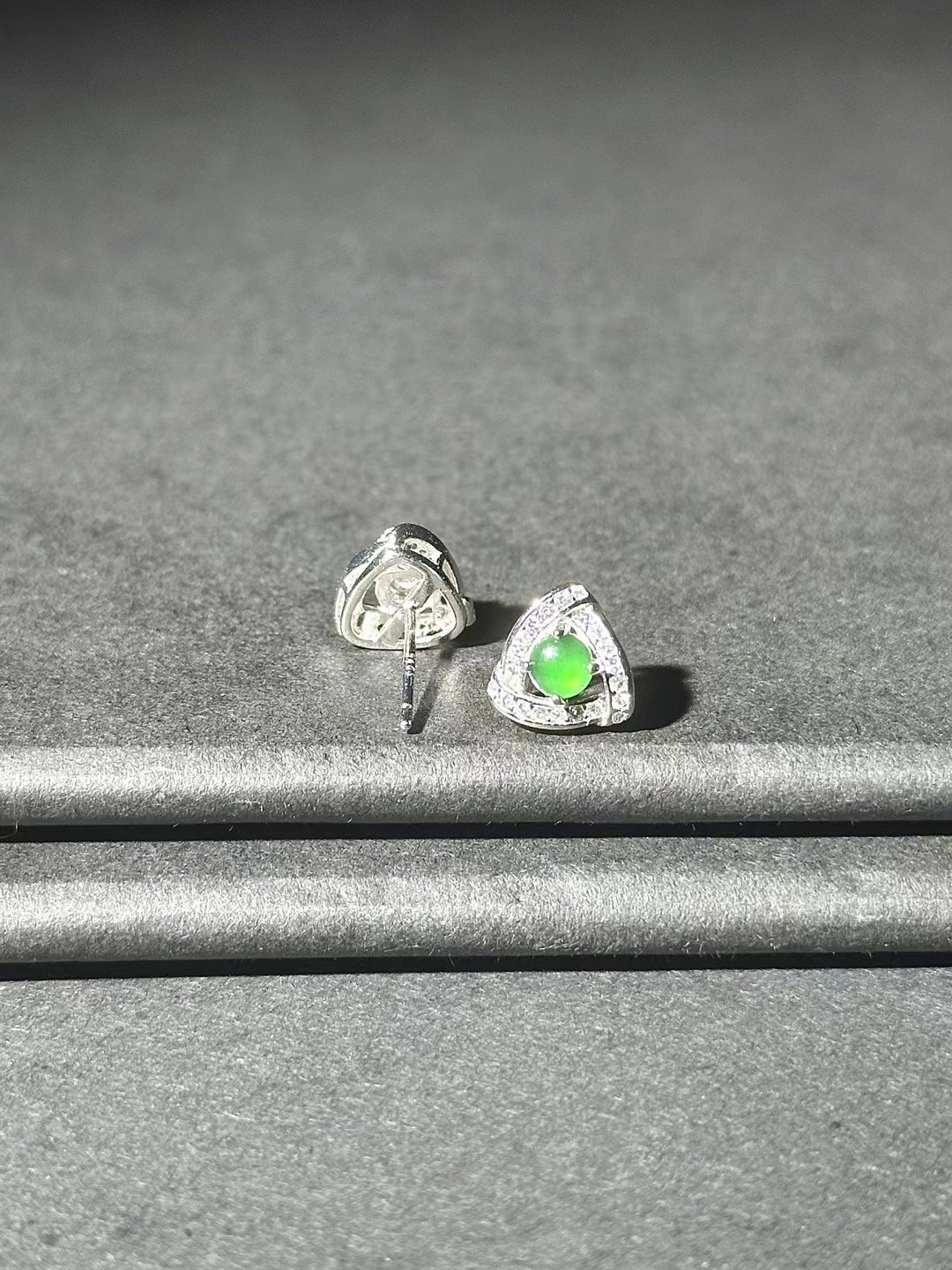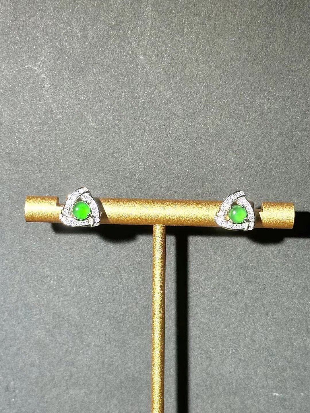 These earrings are a delight! A vibrant green gem in a sleek triangular design with sparkling accents adds instant elegance. Perfect for everyday wear or gifting.