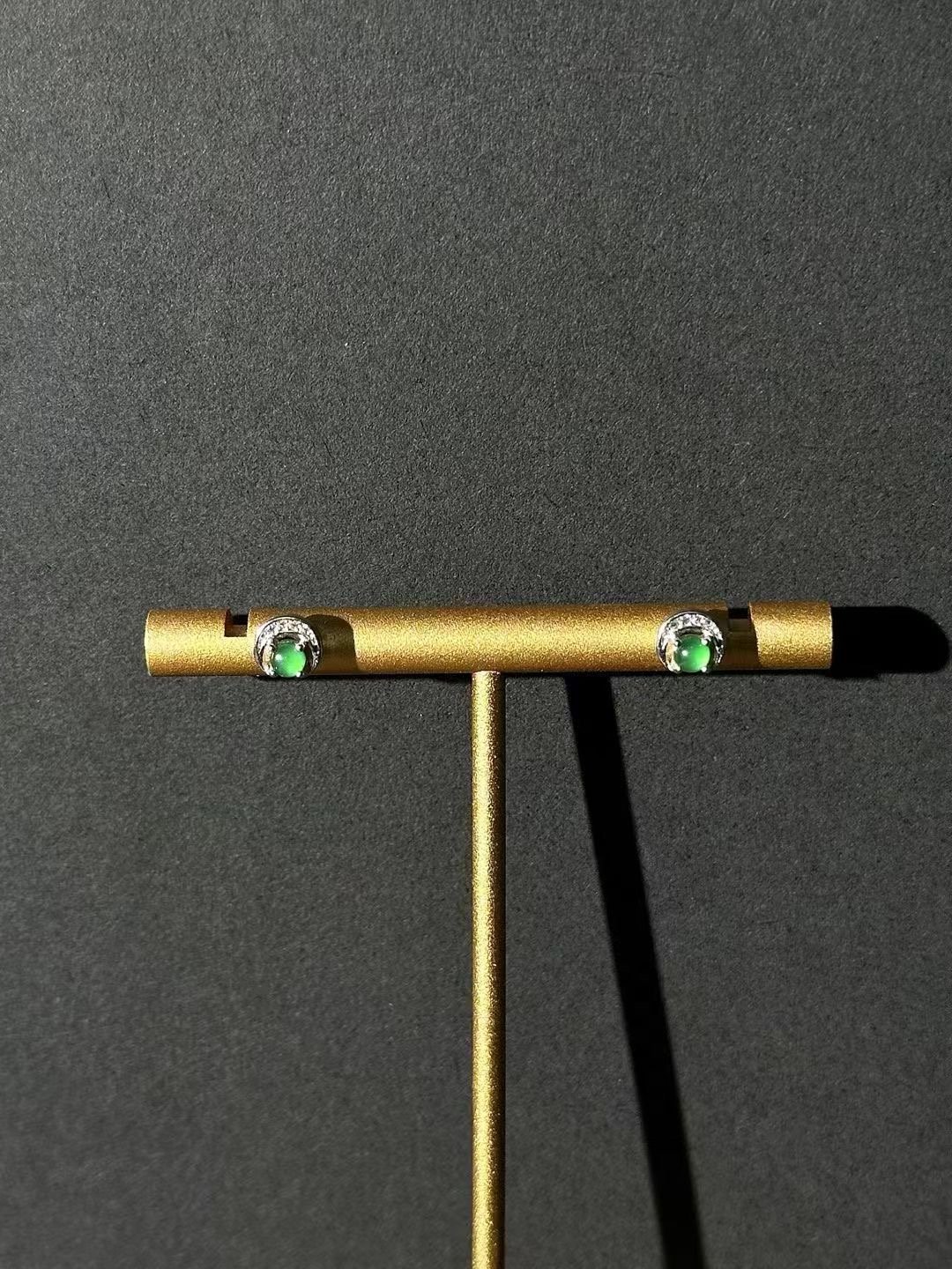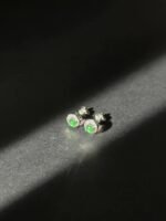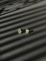 Indulge in the allure of our exquisite stud earrings, a true testament to timeless beauty and craftsmanship. At the heart of each earring sits a resplendent green gemstone, its deep, rich hue reminiscent of a lush forest or the tranquil waters of a hidden lagoon. This gemstone is the star of the show, radiating a natural, captivating glow that’s impossible to ignore.