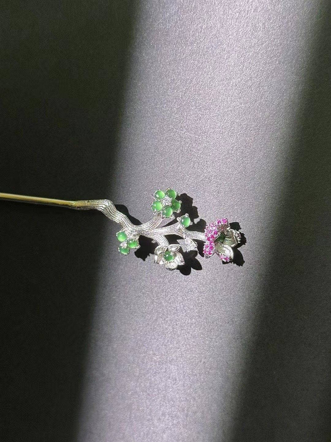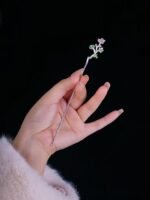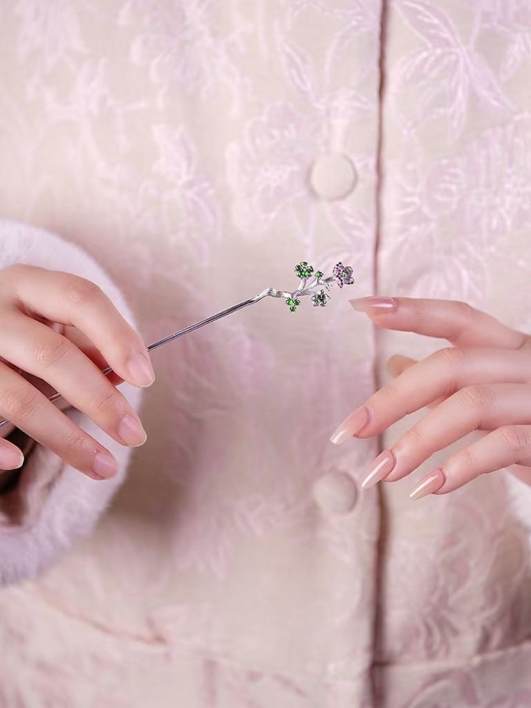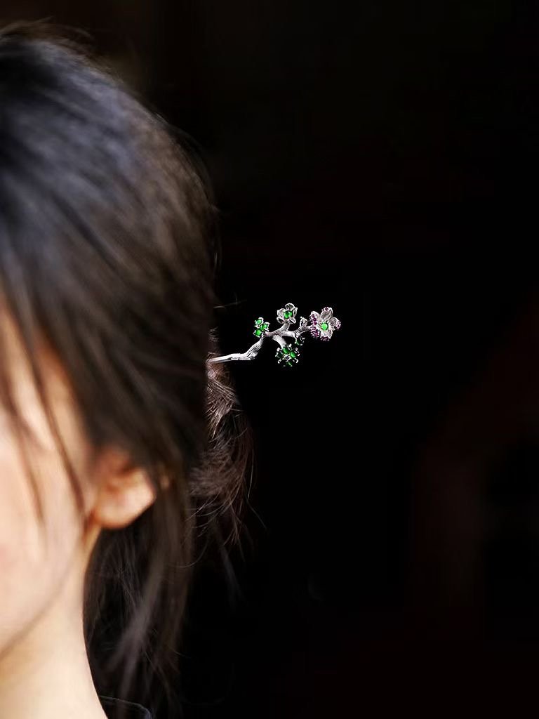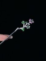 This hairpin is a delicate stunner! Crafted with a silver – toned branch design, it’s adorned with tiny green and purple gem – like flowers. Perfect for adding a subtle, elegant touch to updos—ideal for both casual days and special events.