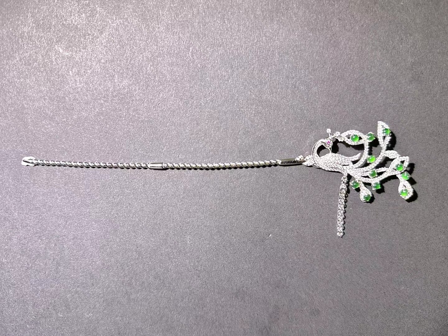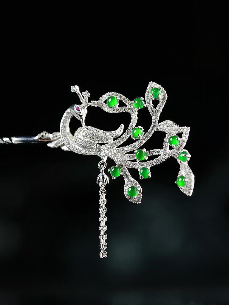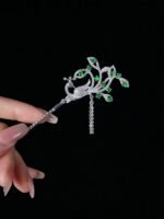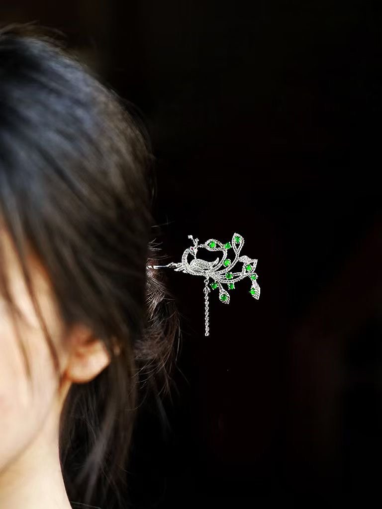 This hairpin is a showstopper! A silver – toned peacock design with sparkling green gems and a dangling tassel. Perfect for adding an elegant, eye – catching touch to your hairstyle—ideal for special events or dressing up traditional looks.