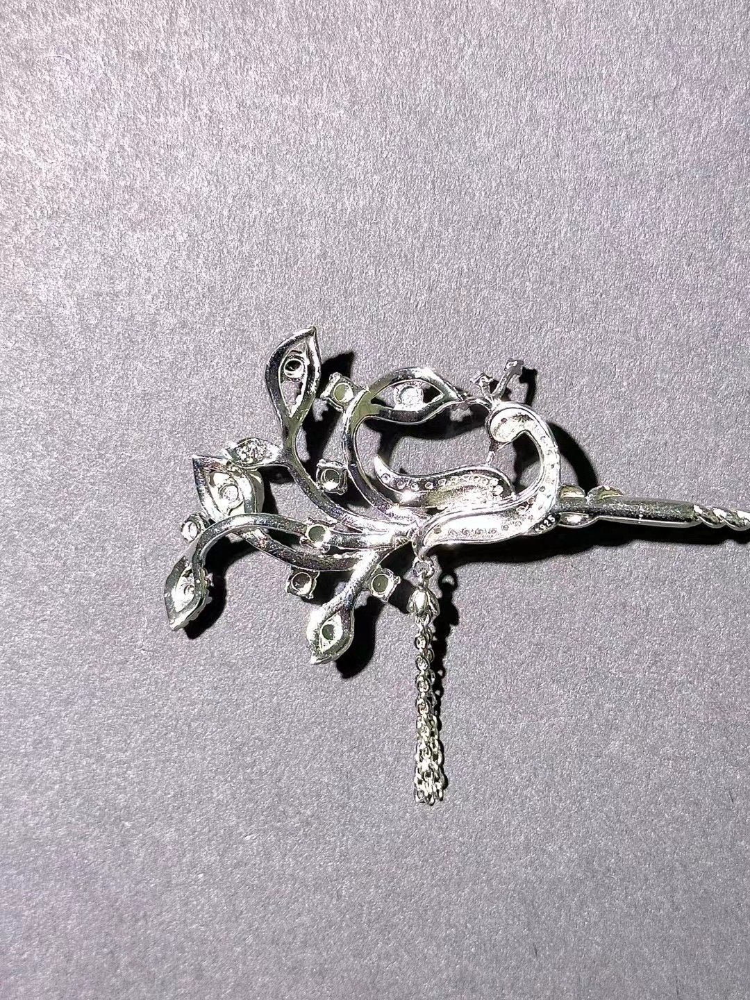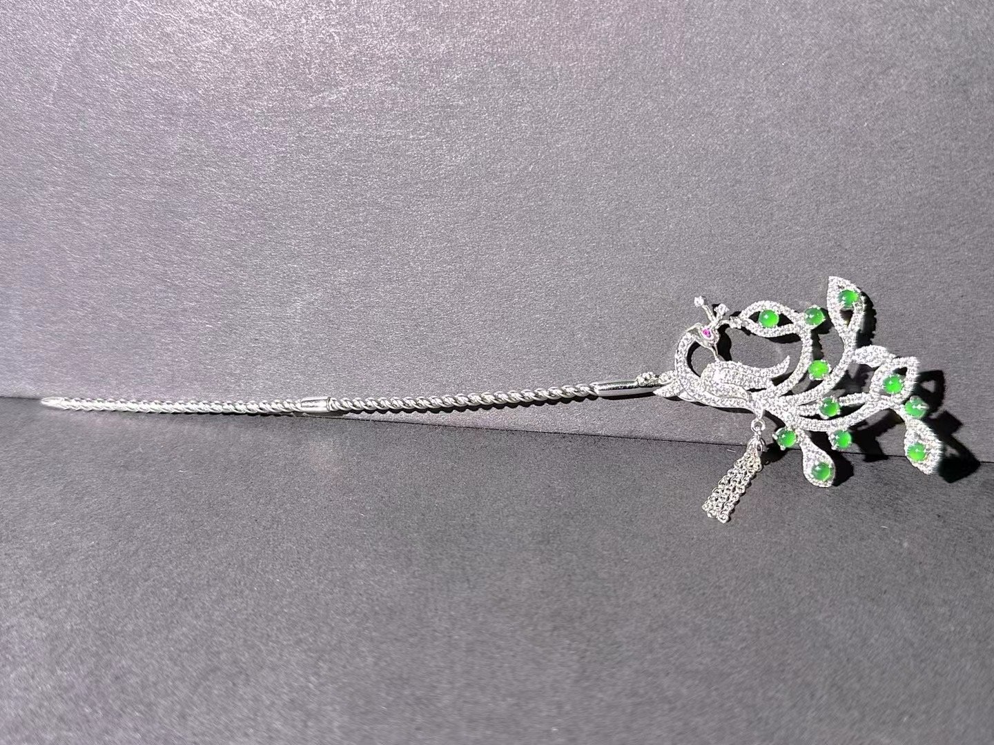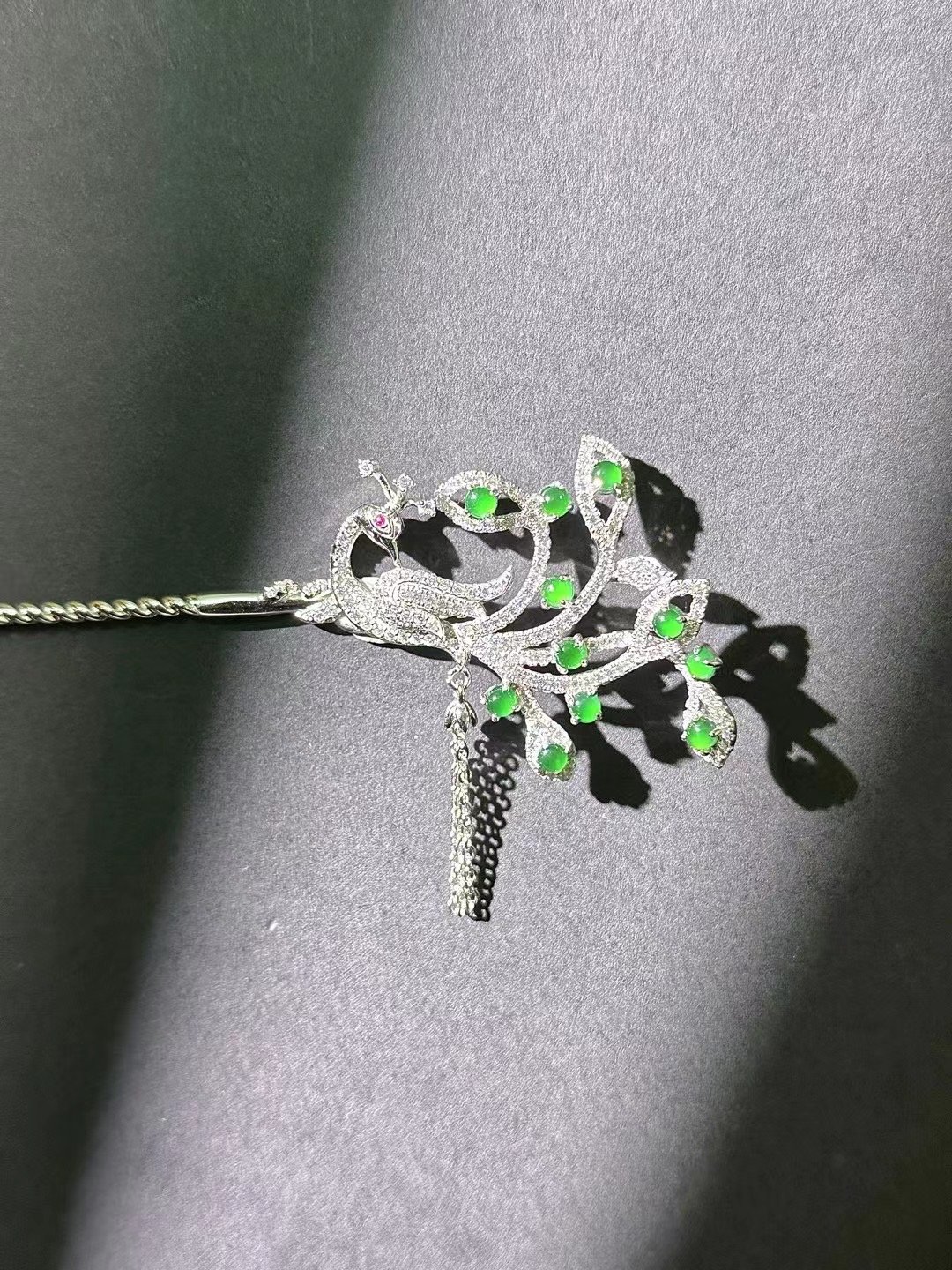 This hairpin is a showstopper! A silver – toned peacock design with sparkling green gems and a dangling tassel. Perfect for adding an elegant, eye – catching touch to your hairstyle—ideal for special events or dressing up traditional looks.