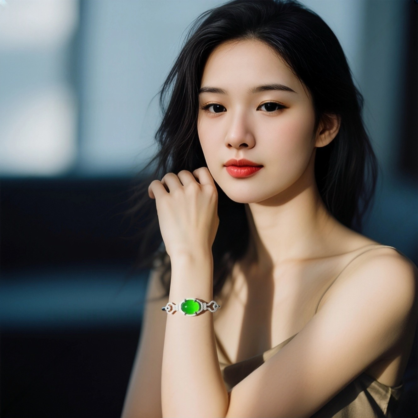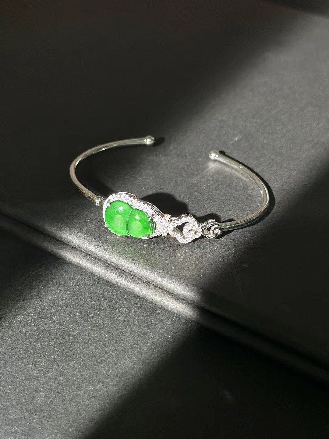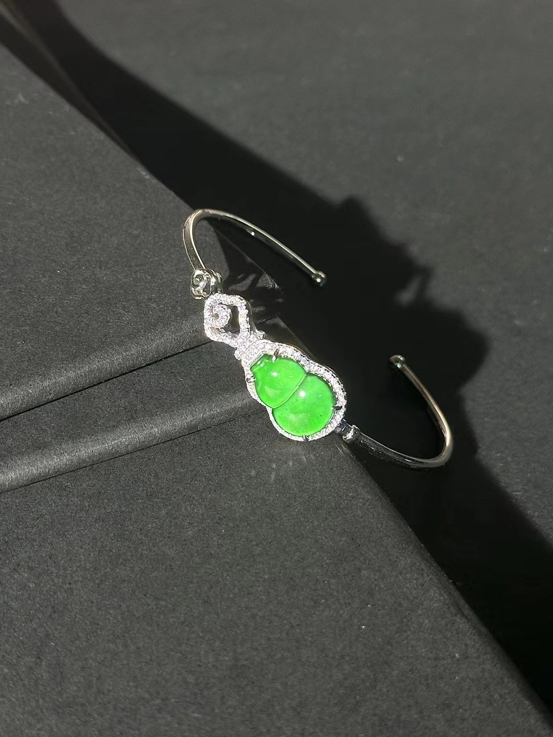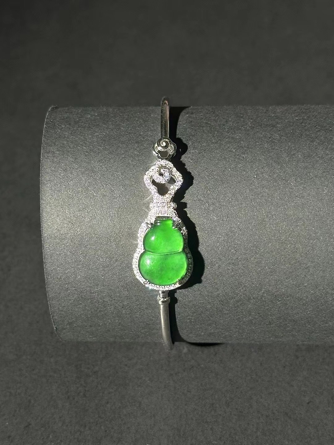 This bracelet is stunning! Featuring a vibrant green gourd – shaped gem and sparkling silver detailing, it adds an elegant touch. Perfect for gifting or elevating your style.