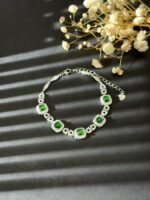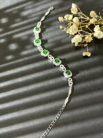 This bracelet is a total standout! Sleek silver links pair with bold green gemstones, creating a chic, eye – catching look. Perfect for adding a touch of luxury to any outfit—whether it’s a casual day or a fancy night out.