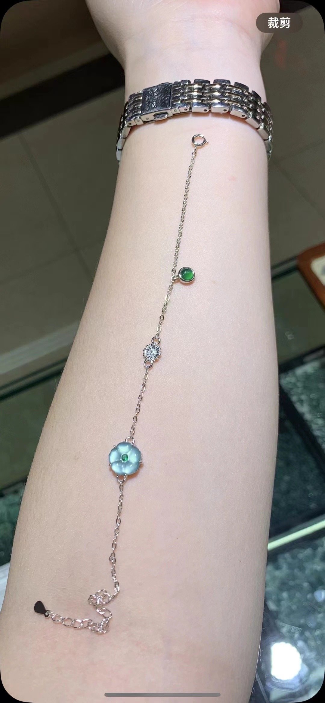 This bracelet is charming! With a delicate silver chain, a pretty blue flower – like gem, and a small green accent, it adds a sweet touch to any look. Great for gifting or everyday wear.
